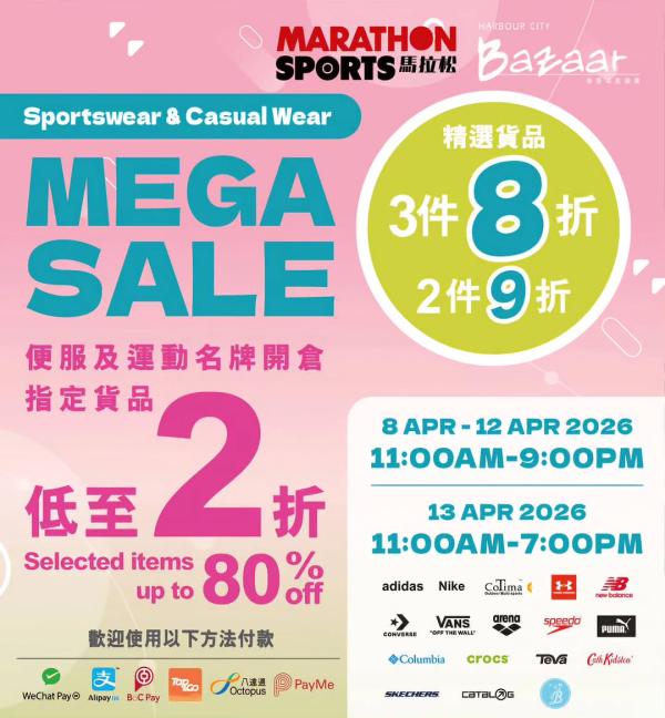 馬拉松便服及運動名牌開倉 Marathon Sportswear & Casual Wear Mega Sale 📆Date: 8-13 Apr 2026 🕰️...